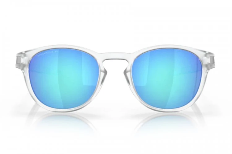 Oakley Sonnenbrille Latch OO 9265 65 in der Farbe Matt Transparent mit grauen, blau verspiegelten, polarisierenden, Prizm Gläsern mit 100 UV-Schutz