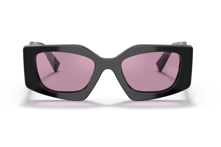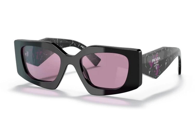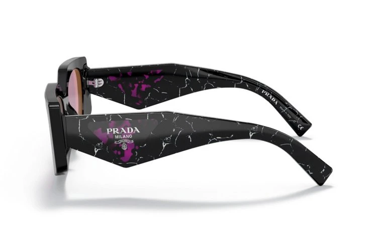 Prada Sonnenbrille PR 15YS 1AB07Q in der Farbe Schwarz / Schwarz-Marmor mit silber-verspiegelten Gläsern in Violett und 100% UV-Schutz