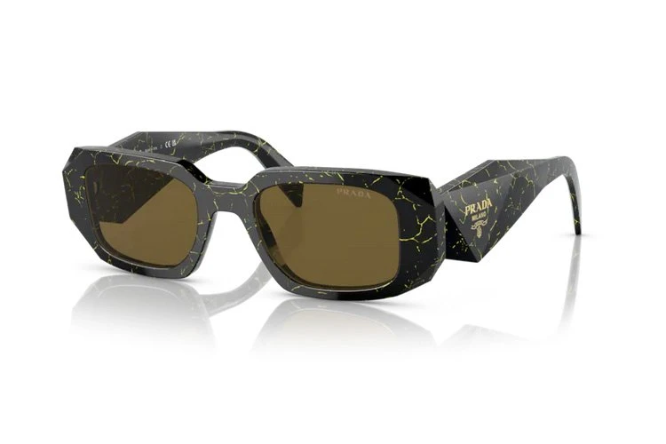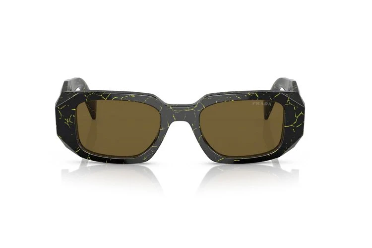 Prada Sonnenbrille PR 17WS 19D01T in der Farbe Schwarz – Gelb-Marmoriert mit braunen Gläsern und 100% UV-Schutz